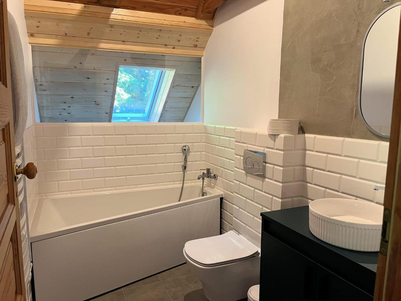 Dom z 1 sypialnią. This holiday home boasts a sauna. The holiday homes kitchen is available for cooking and storing food. The holiday home features a washing machine, heating as well as a terrace with garden views. The unit offers 1 bed. Dom wakacyjny - 1 osobowy. Powierzchnia pokoju ok.: 100 mkw.